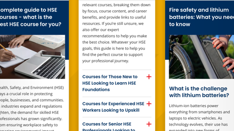 Content marketing played a pivotal role in tying everything together. We began with a full content audit, mapping each piece to persona needs, SEO opportunities, and campaign priorities. This informed a content calendar that balanced brand awareness pieces with practical, conversion-focused guidance. We created new blogs and resources, repurposed high-interest topics from other parts of the site, and produced targeted content designed to engage private delegates, from career-focused advice to in-depth guides on choosing the right HSE course. This approach ensured that content was not only attracting traffic but also moving audiences further along the journey toward enrolment.